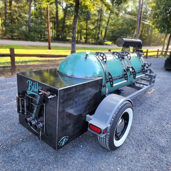 All of our trailers are hand built with over-the-top quality. Made from all tube frames and all wiring hidden within. LED lighting and trailer brakes on anything over 3500 lbs. We also customize. We are the only smoker company offering cantilever swingarm air ride!